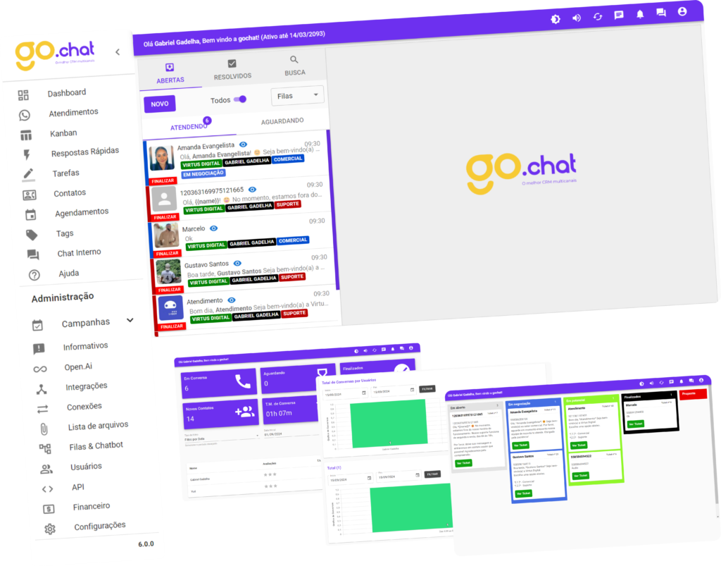“A GO Chat oferece recursos como atendimento simultâneo por múltiplos agentes, automação de respostas, integração com CRM, histórico completo de conversas e relatórios detalhados de desempenho.”