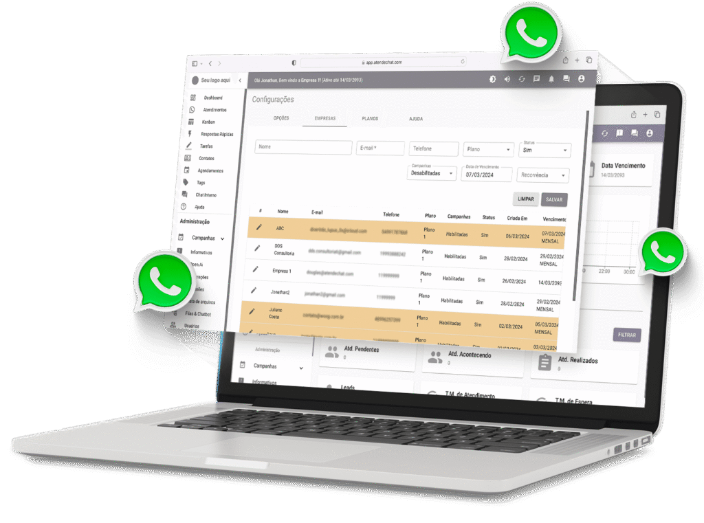 Programe e dispare mensagens diretamente pelo WhatsApp.