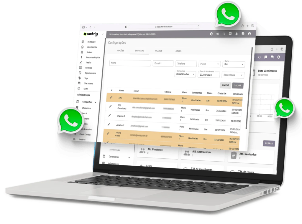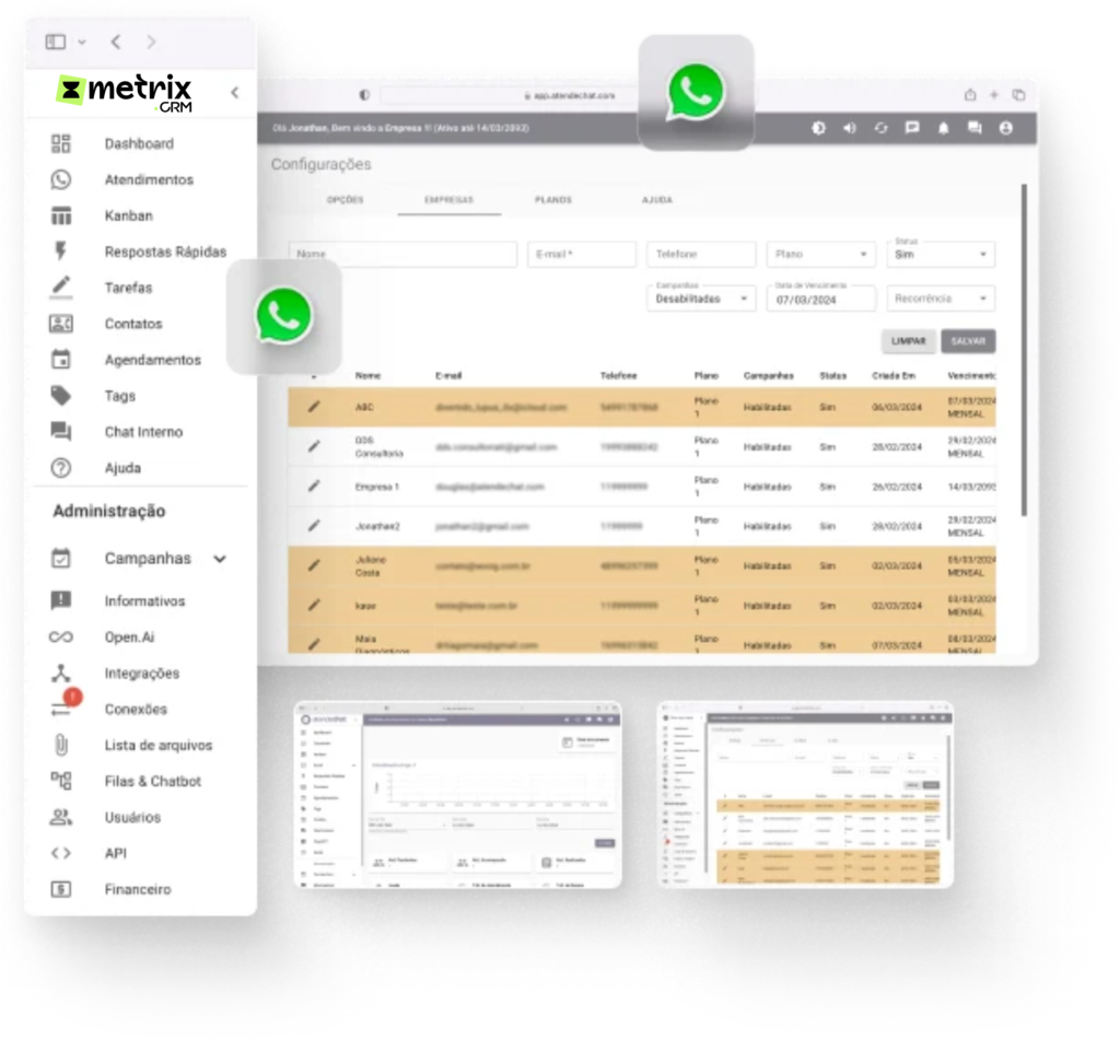 “A Metrix CRM permite que múltiplos atendentes utilizem a plataforma ao mesmo tempo, garantindo que sua equipe possa atender vários clientes simultaneamente, sem perder o controle das conversas ou a qualidade do atendimento.”